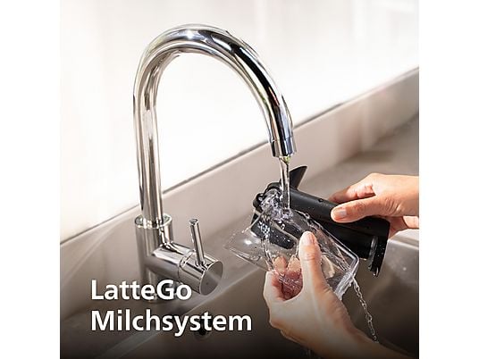 Die Reinigung des LatteGo‑Milchsystems des PHILIPS EP5447/90 Serie 5400 ist sehr einfach. Da es aus nur zwei Teilen ohne Schläuche besteht, kannst du es in kurzer Zeit unter fließendem Wasser reinigen oder bequem in der Spülmaschine säubern. Dieses einfache Konzept spart Zeit und gewährleistet eine hygienische Reinigung.
